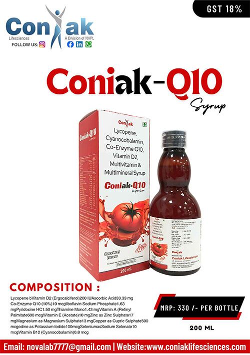 CONIAK Q 10 Softgel Capsules consist of several components such as Omega -3 Fatty Acid, Coenzyme Q10, Lycopene, Selenium, Wheat Germ Oil, L-Arginine, L-Carnitine and Zinc. This medication supports overall health, energy production, and cardiovascular wellness. Each ingredient is carefully selected to provide synergistic benefits such as promoting heart health, reducing oxidative stress, enhancing cellular energy, and boosting immunity.