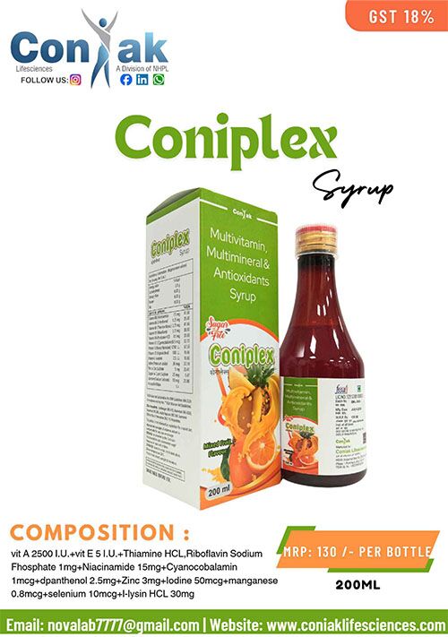 vit A 2500 I.U.+vit E 5 I.U.+Thiamine HCL,Riboflavin Sodium Fhosphate 1mg+Niacinamide 15mg+Cyanocobalamin 1mcg+d-panthenol 2.5mg+Zinc 3mg+Iodine 50mcg+manganese 0.8mcg+selenium 10mcg+l-lysin HCL 30mg syp