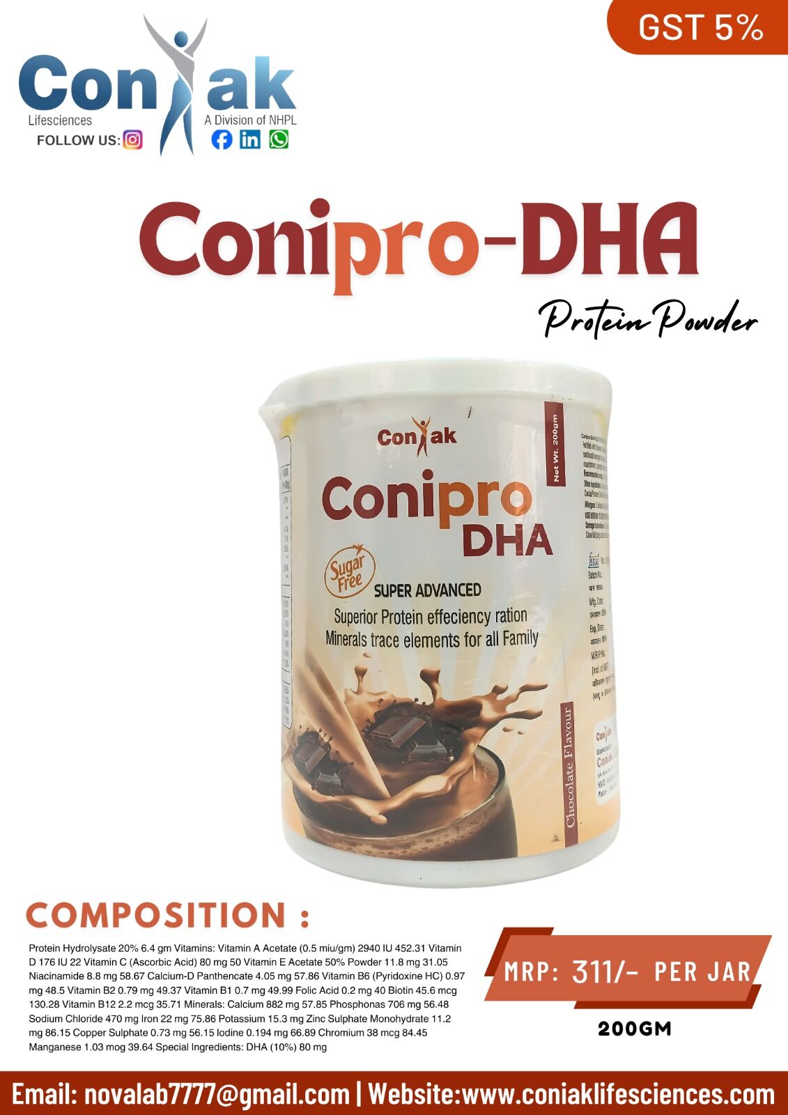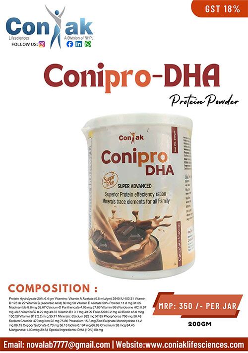 Good nutrition is the foundation of a healthy body, a strong mind, and an active life. CONIPRO-DHA, a superior protein powder with DHA and essential vitamins and minerals, is designed to provide complete and balanced nutritional support for every member of the family. Developed by Coniak Lifesciences, this super advanced sugar-free protein powder helps individuals meet their daily nutritional needs and feel their best every single day.