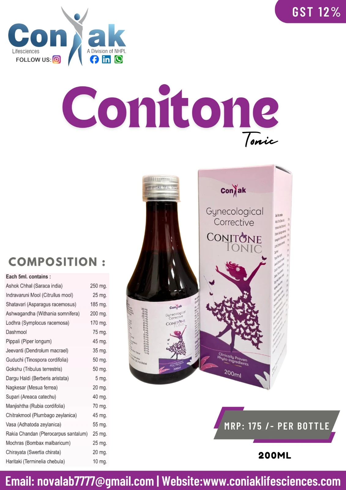Uterine Tonic (ashok chhal 250mg,Indravaruni mool 25mg,shatavari 185mg,Ashwafandha 200mg, lodhra 170mg,Dashmool 75mg,Pippalo 45mg,Jeevanti 35mg,Guduchi 50mg, dargu haldi 5mg,nagkesar 20mg,supari 40mg,Manjishta 70mg,Chitramool 45mg,vassa 55mg,rakia chandan 25mg,mochras 25mg,chirayata 20mg,haritaki10mg,Sugar syr base)