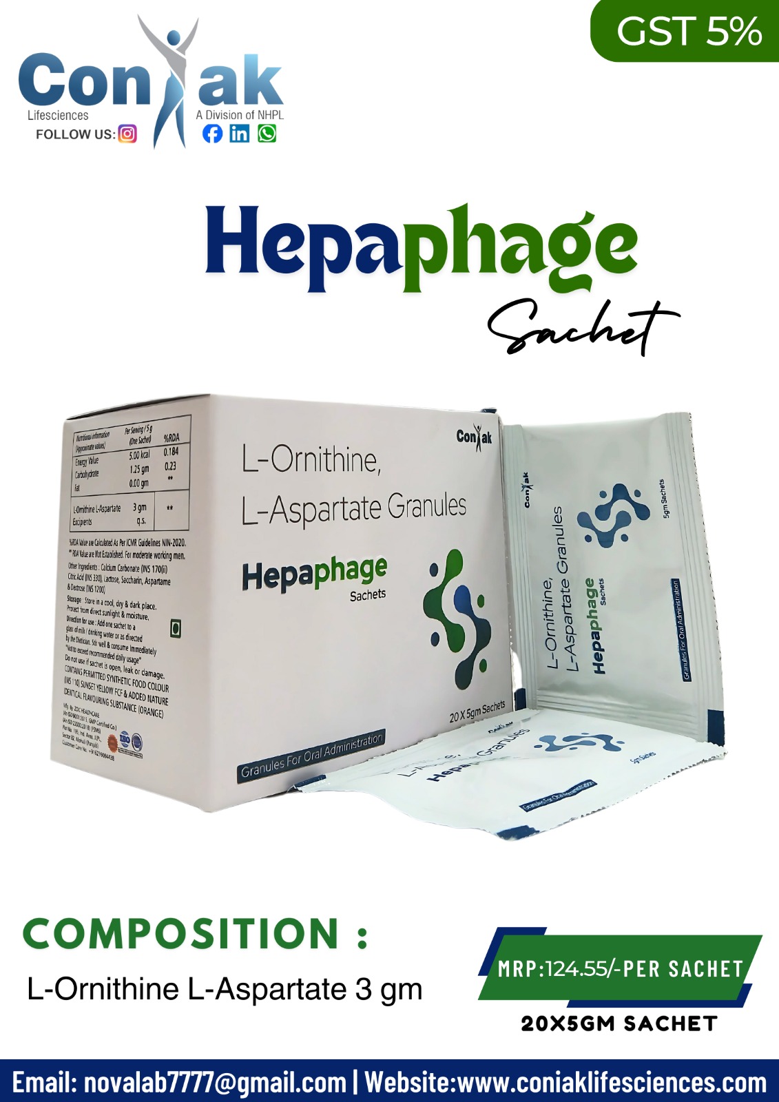 Maintaining optimal liver function is a cornerstone of overall physical health and vitality. Hepaphage Sachet, a specialized formulation of L-Ornithine & L-Aspartate (3gm), provides targeted nutritional support designed to promote healthy liver metabolism and efficient waste removal. This high-potency granule formula is engineered to assist the body’s natural detoxification processes, ensuring that your liver has the essential amino acids it needs to perform at its peak.