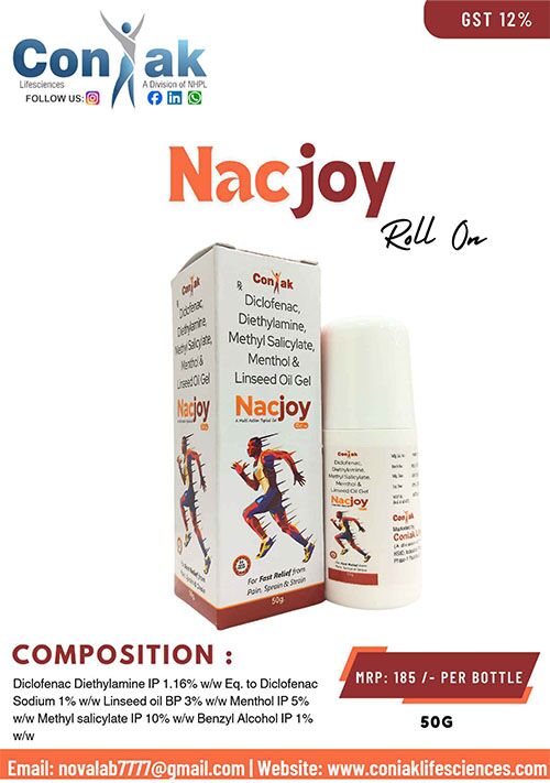 Maintaining an active lifestyle requires a body that can recover quickly from daily physical demands. Nacjoy Roll-On, a specialized Gel Base formulation, is designed to provide targeted, cooling, and soothing support for muscles and joints. This advanced topical solution features a unique blend of six active ingredients, including Diclofenac Diethylamine (1.16%), Diclofenac Sodium (1%), Menthol (5%), Linseed Oil (3%), Benzyl Alcohol (1%), and Methyl Salicylate (10%). By combining these potent components in a convenient roll-on format, Nacjoy offers a professional-grade approach to maintaining physical comfort and mobility.