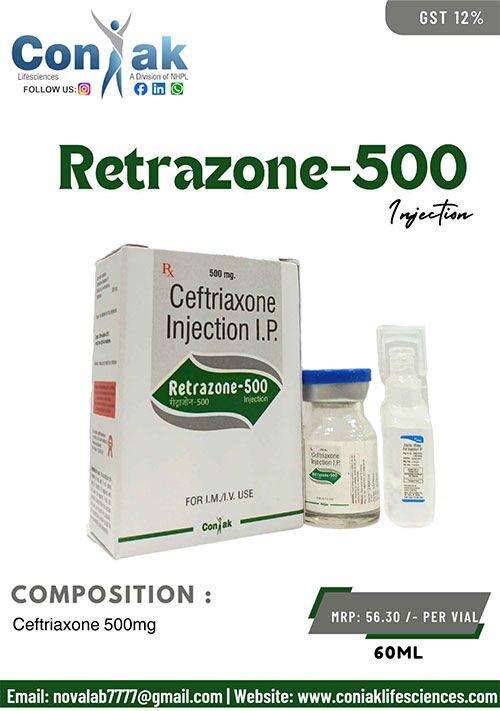 Retrazone-500 can be administered both intravenously and intramuscularly, giving the treating doctor the flexibility to choose the best route based on the patient’s condition, age, and clinical setting. Every vial made by Coniak Lifesciences is tested carefully for safety, purity, and strength.